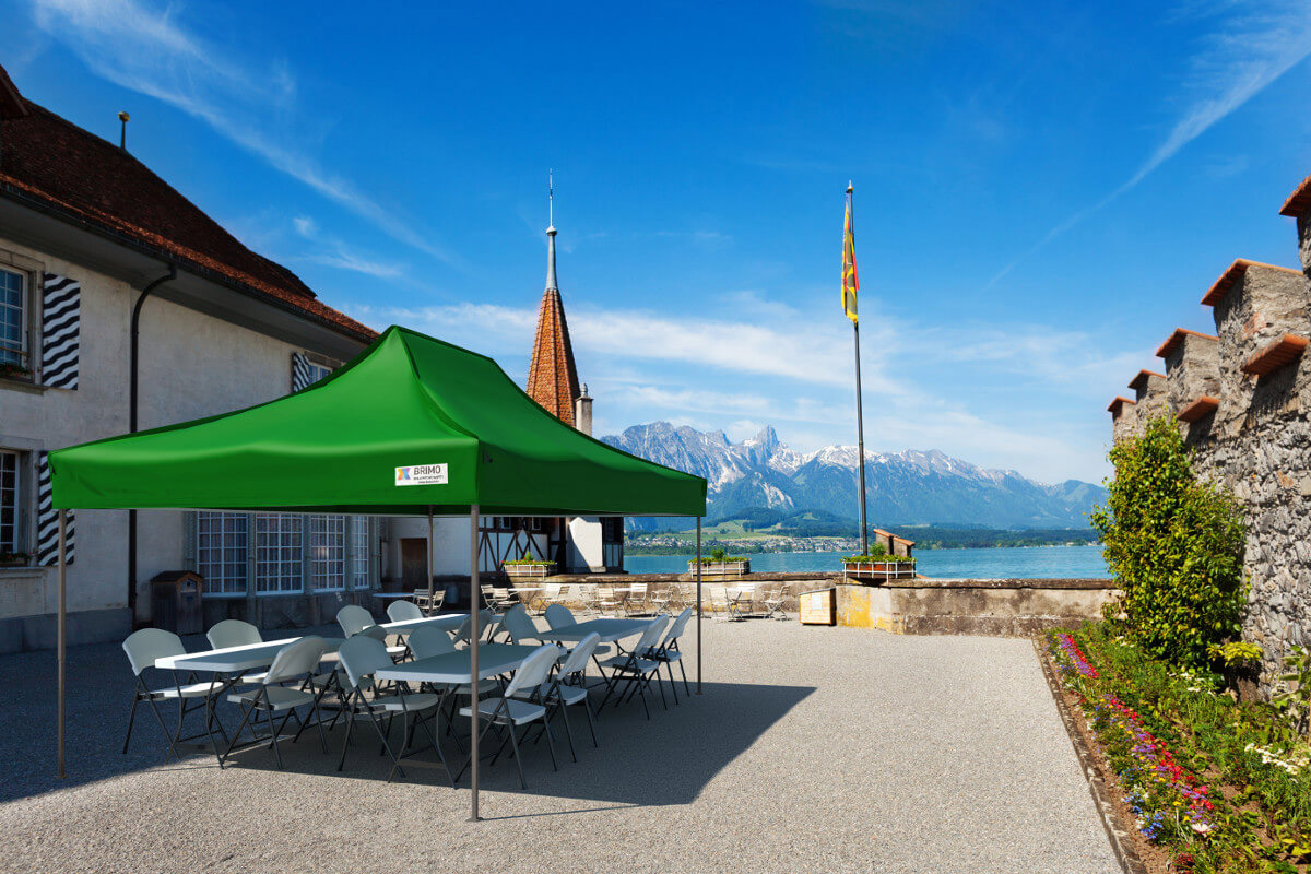- Hardened surface (hall/paving): Stabilization using steel weights or bags. Závažie pre stánok you can purchase at any time.
